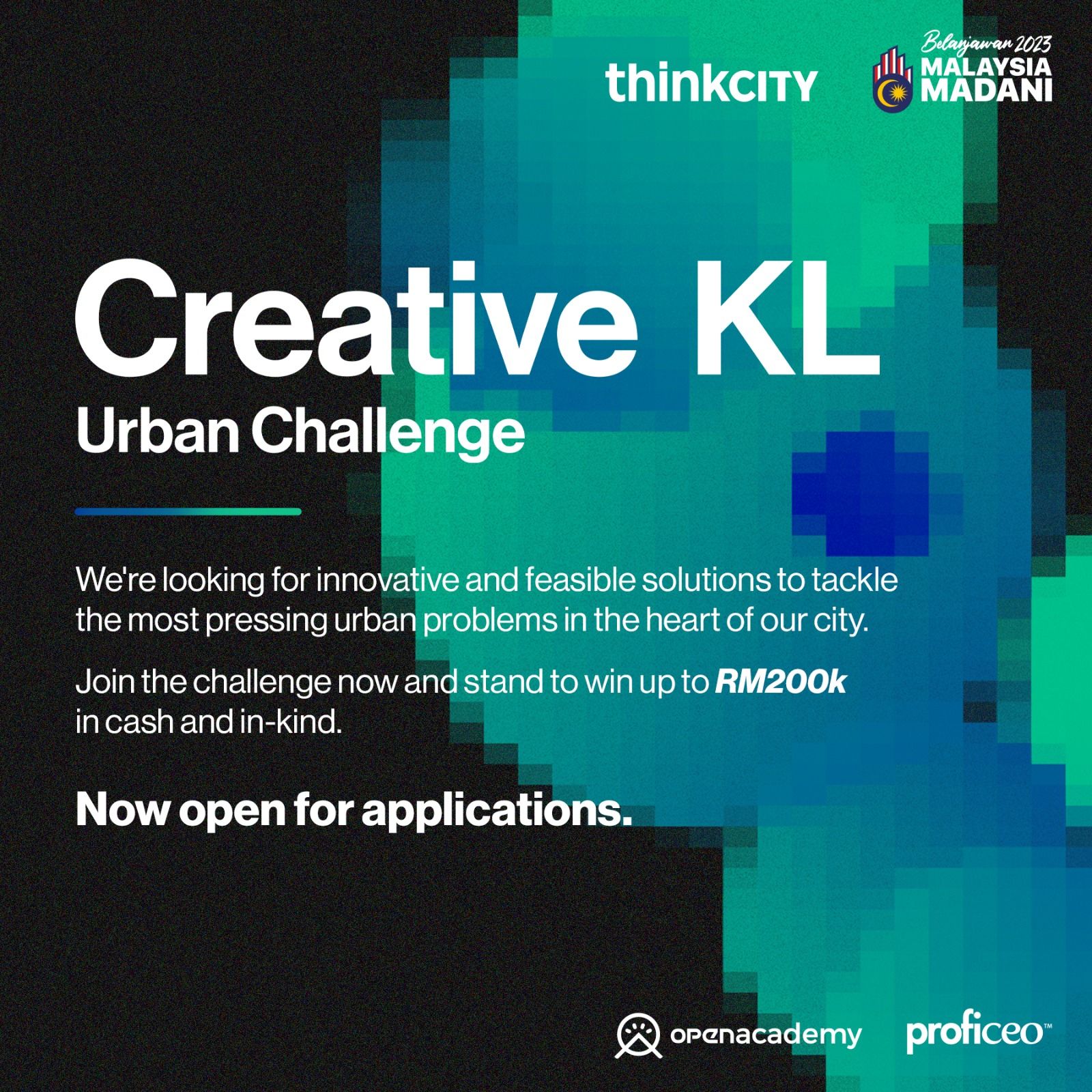 Downtown Kuala Lumpur awaits its transformational rebirth, and it starts with you. Embrace the Creative KL Urban Challenge as your platform to shape the city's destiny. Think City and Kuala Lumpur City Hall (DBKL) eagerly anticipate your visionary solutions, offering funding up to RM200,000 to pilot your project. Together, we will build a sustainable and thriving Downtown Kuala Lumpur that future generations will cherish. The time is now. Unleash your creativity, ignite change, and embark on this extraordinary journey to transform Downtown Kuala Lumpur for a sustainable future.