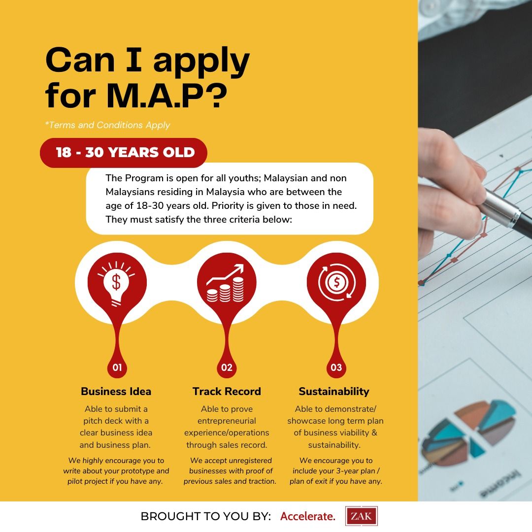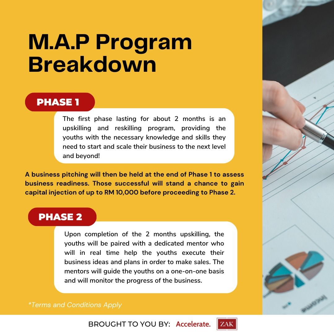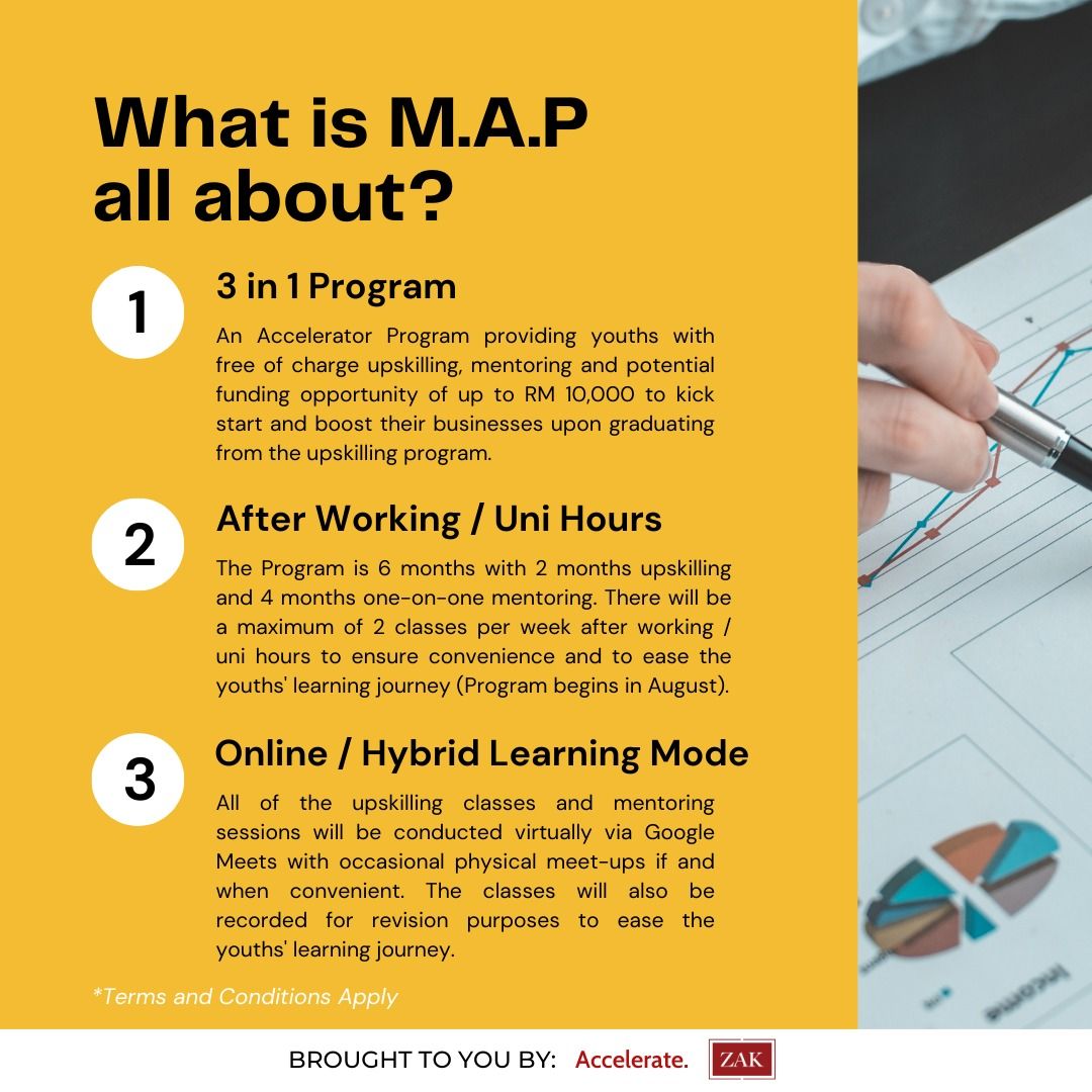 Are you a youth dreamer ready to take the business world by storm? Look no further! Accelerate Global and Zak Capital are teaming up to bring you MAP, the ultimate Accelerator Program designed to supercharge your entrepreneurial aspirations. Get ready for a rollercoaster ride of upskilling, mentoring, and the chance to secure funding of up to RM 10,000!