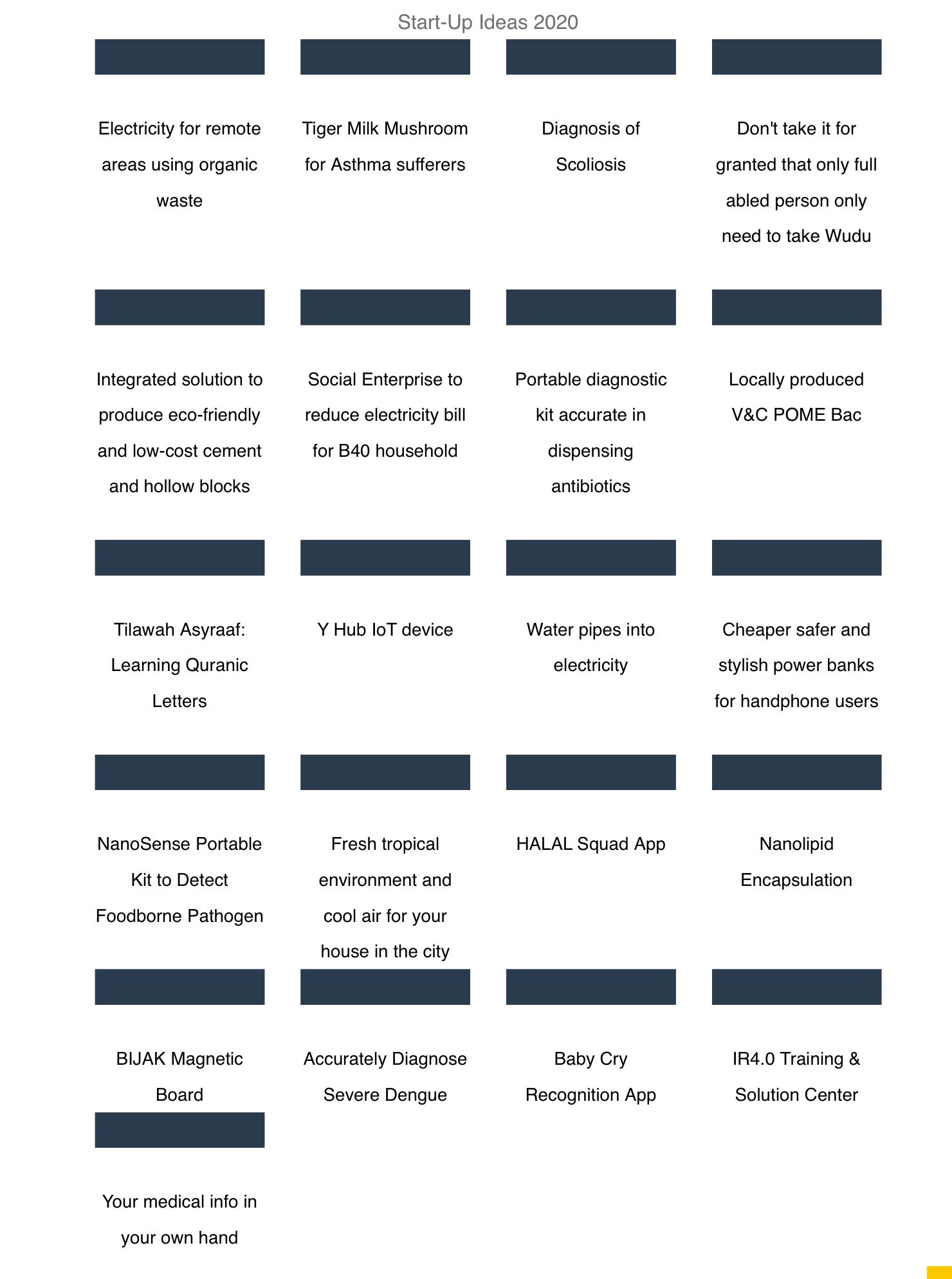 Some of the startup ideas launched during UMDT 1.0 and UMDT 2.0